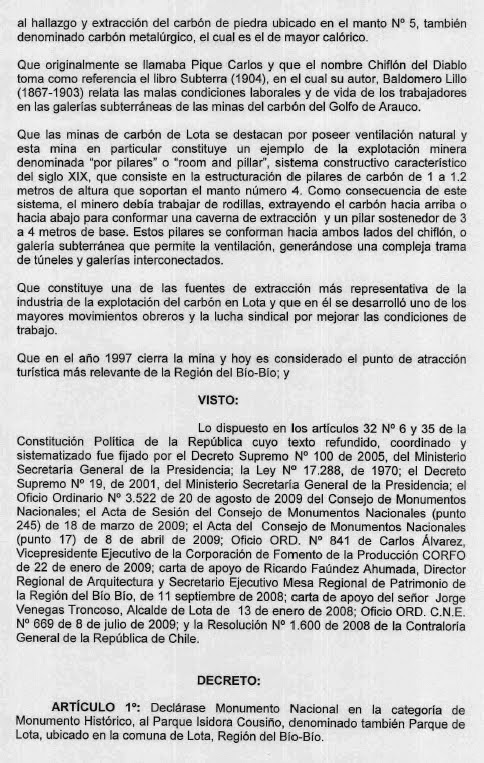 DECLARACIÓN COMO MONUMENTO HISTÓRICO EMBLEMÁTICOS EDIFICIOS DE LOTA (Consejo de Monumentos Nacionales, 22 sep. 2011)